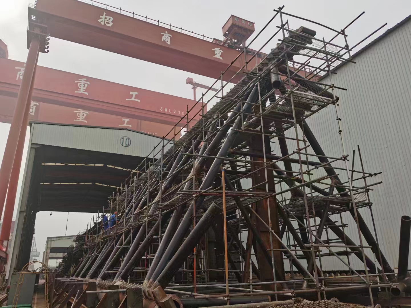 2023年4月30日,隨著招商重工273項目最后一節(jié)樁腿的成功摘鉤,標志著豪通船務承接的招商重工“1200噸風電安裝船”樁腿工程完美收關。自22年8月1日開始,豪通船務調集最優(yōu)秀的班組從齒條加工,單樁腿制作,樁腿合攏及最后的插樁對接,每一個環(huán)節(jié)都嚴絲合縫,無縫對接,所有作業(yè)人員爭分奪秒,夜以繼日,力爭在最短時間內保質保量完成項目并交付。